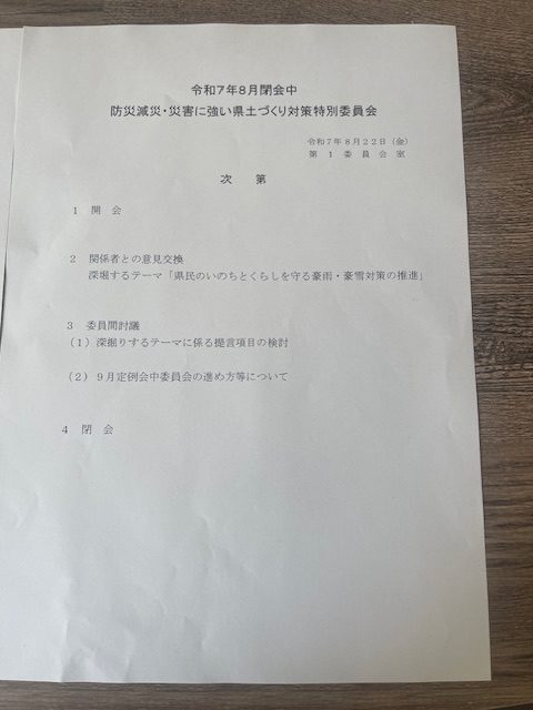 山形県議会に行って「災害減災・災害に強い県土づくり対策特別委員会」に参加してきました。
