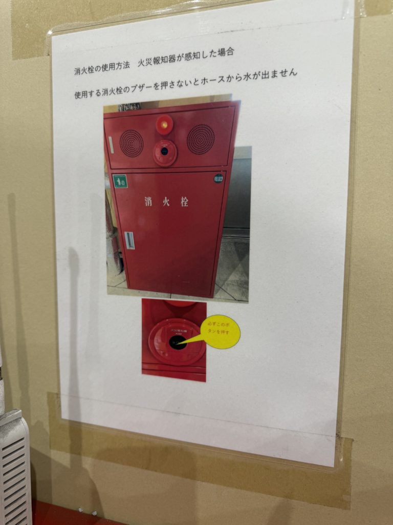 早期発見、初期消火、避難誘導に備え、警戒区域図をすべての階に掲示しています。そして、屋内消火栓設備にも維持管理及び使用方法を目立つところに掲示し社員への周知徹底を行っています。組織としての防火意識の高さが分かります。人が使用してはじめて活きる消火設備です。弊社は、真の安心安全な企業創りのサポートをしております。